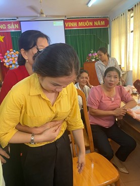 Trong ba ngày tập huấn, học viên được bổ sung kiến thức về chăm sóc trẻ nhỏ, thực hành tổ chức buổi hướng dẫn cha mẹ lồng ghép trong buổi tiêm chủng, chia sẻ kinh nghiệm thực tế tại địa phương và nhận góp ý chuyên môn trực tiếp từ giảng viên và các học viên trong lớp nhằm hoàn thiện kỹ năng điều hành buổi sinh hoạt.
