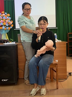 Chị Trần Thị Mê Linh – Trạm Y tế Bắc Bình (điểm trạm Phan Rí Thành) chia sẻ: “Tôi rất hào hứng với nội dung tập huấn vì có nhiều kiến thức mới, đặc biệt là phần sơ cấp cứu ban đầu cho trẻ 0–5 tuổi. Đây là những kỹ năng rất cần thiết đối với cán bộ tuyến cơ sở khi làm việc trực tiếp với người dân. Khóa học cũng giúp cha mẹ hiểu rõ hơn trách nhiệm của mình trong việc chăm sóc và phát triển trẻ toàn diện trong 2.000 ngày đầu đời. Tôi mong rằng thời gian tới sẽ có thêm nhiều cán bộ y tế khác được tham gia tập huấn.”