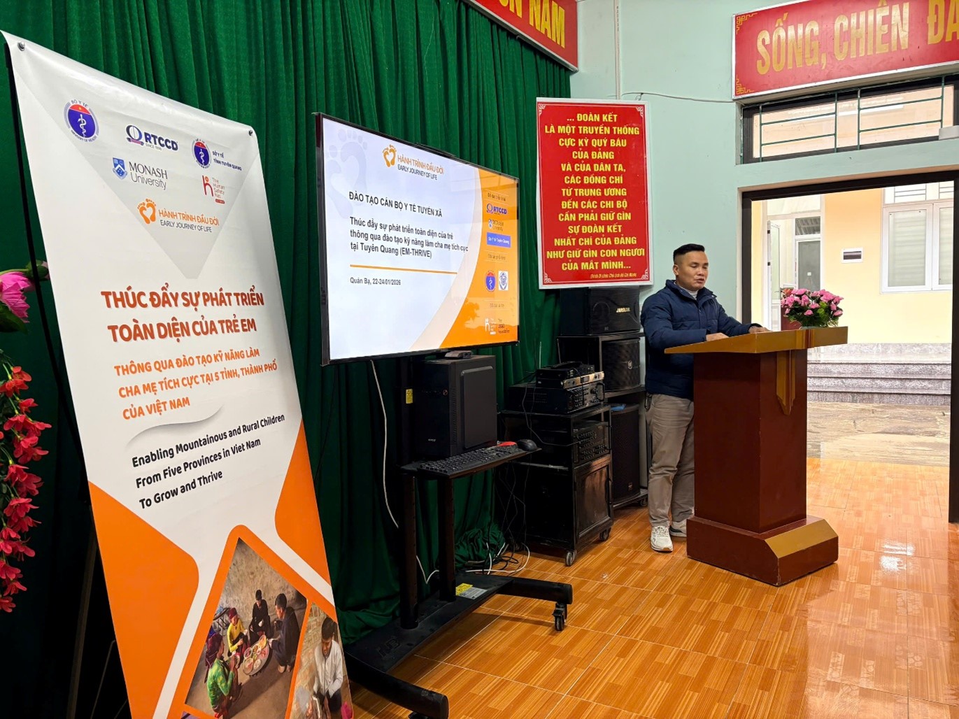 From 19 to 24 January 2026, the Research and Training Centre for Community Development (RTCCD), in collaboration with the Tuyen Quang Provincial Department of Health, organized two training courses for 40 Commune Health Workers from four communes: Meo Vac, Dong Van, Quan Ba, and Yen Minh on the programme “Promoting the holistic development of children through training in positive parenting skills in five provinces and cities of Vietnam” (EM-THRIVE).