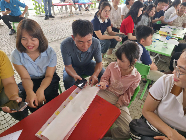 Sau phần hoạt động riêng, cha mẹ và con cùng tham gia các nội dung trải nghiệm chung như trò chơi phối hợp, mini workshop về “5 ngôn ngữ tình yêu” và viết thông điệp gửi cho nhau.