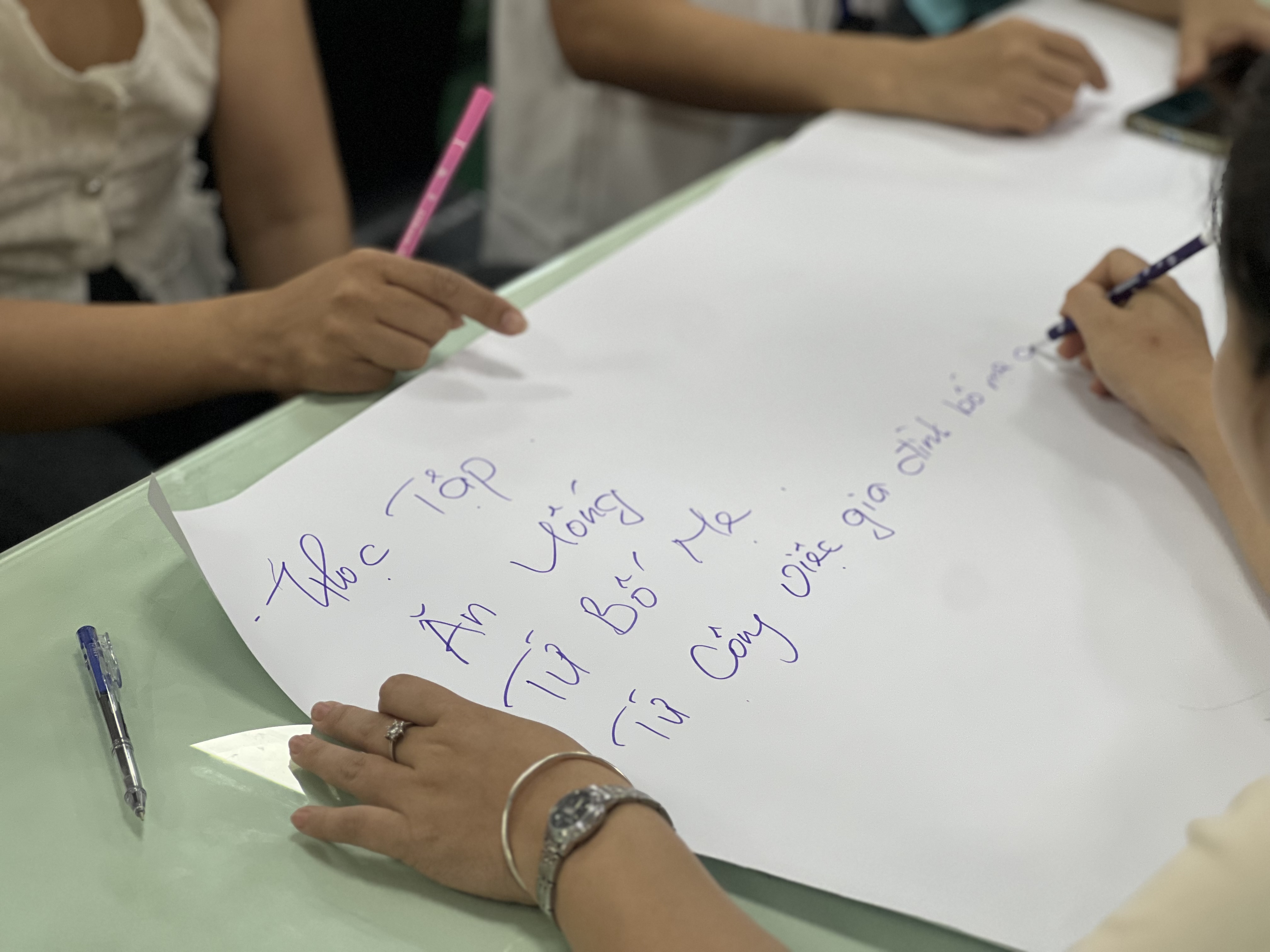 Những hoạt động nhóm sôi nổi trong chương trình đã giúp các gia đình không chỉ tiếp nhận thêm nhiều kiến thức hữu ích mà còn được lắng nghe những chia sẻ, kinh nghiệm từ các chuyên gia về gia đình và cảm xúc. Đặc biệt, hoạt động cùng nhau viết ra những khó khăn, áp lực mà mỗi gia đình đang trải qua đã tạo cơ hội để các thành viên thấu hiểu và kết nối với nhau nhiều hơn.