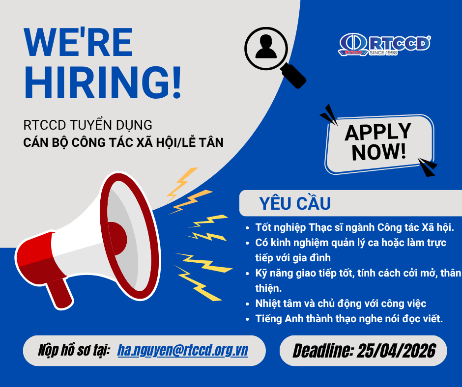 • RTTCD Tuyển dụng Cán bộ Công tác xã hội/Lễ tân